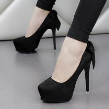 超高跟女鞋细跟防水台圆头女鞋2017春季新款性感蝴蝶结夜店高跟鞋