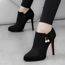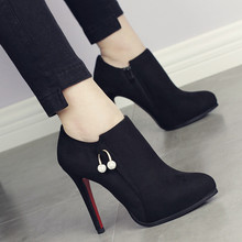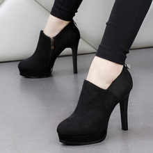 2017春秋新款尖头高跟鞋细跟防水台短靴性感水钻及裸靴深口女靴潮