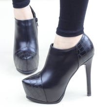 2016秋冬超高跟短靴细跟防水台尖头女鞋蛇皮纹宴会性感马丁靴裸靴