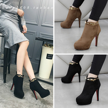 欧美2016秋冬超高跟短靴细跟防水台女鞋潮性感皮带扣马丁靴及裸靴