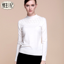 椿生纪半高领毛衣轻薄款修身打底羊毛衫女钩花套头长袖白色针织衫