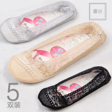 5双装 蕾丝 袜子 女 浅口 隐形袜 冰丝 船袜 硅胶防滑 足底棉透气