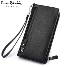 皮尔卡丹长款拉链钱包男真皮多卡位手包手机包商务纯牛皮手拿包潮
