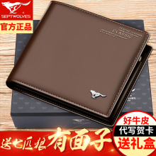 正品七匹狼钱包男短款 真皮学生钱夹头层牛皮皮夹 男士韩版钱包