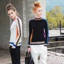 欧洲站2016秋新品毛衣女装 彩色条纹镶边 套头长袖针织衫 Z609307