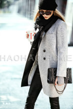 浩浩家欧洲站气质单排扣大衣 羊毛呢外套中长款女F609393