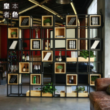 铁艺屏风隔断墙实木格子架书架工业风屏风隔断置物架铁艺隔断客厅