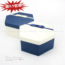 礼物盒饰品包装盒大号礼品盒 订制正方形定做 蓝白六角形礼盒