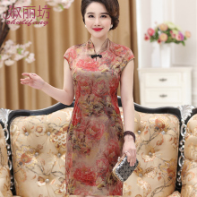 中老年女夏装中长款旗袍裙子40岁妈妈夏季短袖雪纺连衣裙时尚上衣