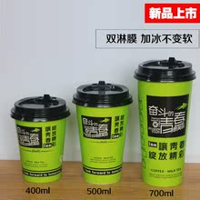 一次性奶茶咖啡纸杯子400/500/700ml奋斗青春冷热饮加厚双P纸杯