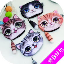 3D印花卡通可爱小猫咪短款布艺零钱包硬币包手抓包女士手机包小包