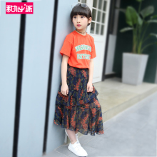 女童套装裙2017新款夏季长款半身裙中大儿童女孩短袖公主裙两件套