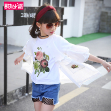 女童夏季套装2017新款女孩时尚漏网短裤+短袖T恤中大童潮衣连件套