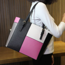 单肩包女韩版学生大包包2017新款学院风撞色手提包简约百搭托特包