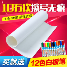 1.6mm加厚超大白板墙贴纸可擦写软白板贴 无磁性 宽1.2米 长定制