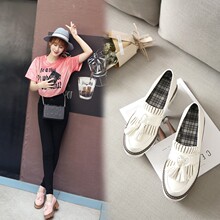 2017春季新款单鞋女舒适粗跟中跟厚底女鞋时尚流苏鞋学院休闲鞋