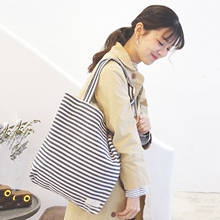 白日梦长 原创手工制品文艺清新条纹风单肩布包 帆布包 购物袋