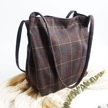 白日梦长 秋冬新款毛呢大包复古文艺单肩包简约百搭格子斜跨包