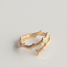 原创设计银饰925纯银镀金枯树复古开口戒指文艺气质个性戒指包邮