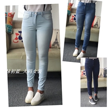 包邮加大码女装牛仔裤女中高腰200斤显瘦修身铅笔裤弹力小脚裤C21