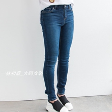 A629大码女装2017胖mm秋冬装新品弹力小直筒修身牛仔裤