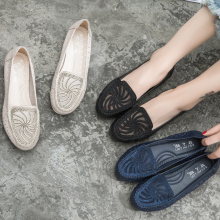 2017新款夏季真皮妈妈鞋子平底单鞋凉鞋女镂空透气女鞋平跟豆豆鞋