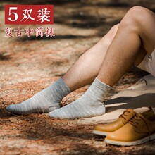 秋冬男士竹节纱民族风中筒袜原宿名族风男袜吸汗防臭礼盒装袜i子