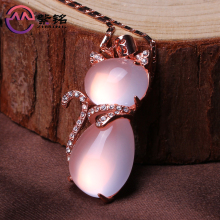 招桃花天然水晶冰种粉晶狐狸吊坠女芙蓉石旺夫防小三 玫瑰金饰品