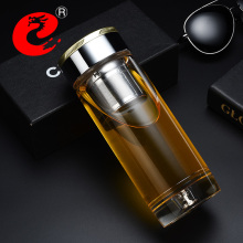 卧龙玻璃杯男士单双层有盖车载隔热茶隔过滤便携直身水杯