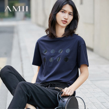 Amii极简主义旗舰店显瘦棉夏装艾米短袖印花白色黑色大码女士T恤