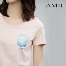 Amii极简主义艾米2017夏新品宽松纯色圆领落肩印花休闲T恤