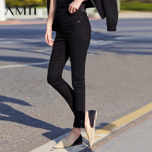 AMII春夏季新款高腰牛仔裤女九分裤小脚长裤韩版显瘦黑色铅笔裤子