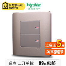 施耐德双联单控开关面板 双开单控纯平开关16A 86型 轻点格调棕