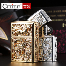 CHIEF煤油打火机 24K镀金打火机 进口打火机 限量版镂空龙马精神