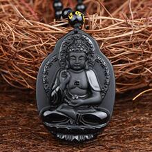 屹佳开光天然黑曜石大势至菩萨吊坠生肖属马本命佛守护神送证书
