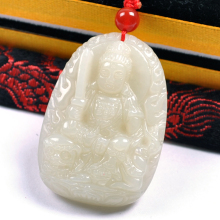开光天然和田玉属鼠千手观音菩萨守护神本命佛吊坠项链青白玉挂件