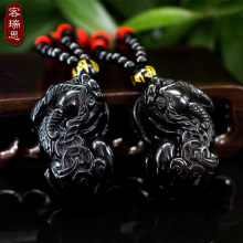 开光黑曜石貔貅吊坠男款 皮丘护身符 招财镇宅辟邪麒麟貔貅项链女