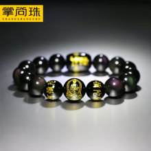 开光天然黑曜石男士手链金曜石佛珠单圈饰品手串生肖猴彩虹眼水晶