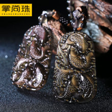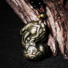 掌尚珠金曜石貔貅吊坠男 开光项链男水晶饰品 天然黑曜石貔貅挂坠