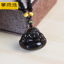 掌尚珠冰种彩虹眼黑曜石弥勒佛吊坠 开光本命年大肚佛挂坠女饰品