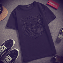 夏季男士短袖t恤男爆款太空棉修身圆领虎头立体3D印花短袖t恤半袖