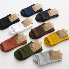 春夏新品韩国创意个性纯色中筒竖条基础款女中筒棉袜纯棉居家吸汗