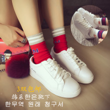 韩国原单潮人字母卡通二杠纯棉中筒袜女日系原宿长袜 韩版M堆堆袜