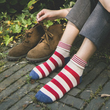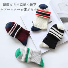 外贸原单低腰袜子女粗线潮条纹纯棉大码短袜 日系低帮短筒袜6双装
