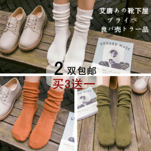 出口韩国白色长袜子女美腿纯棉短靴袜 春秋日系甜美纯色棉堆堆袜