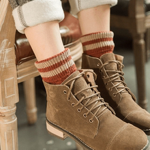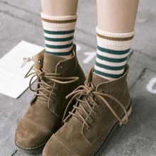 2017新品日系原宿粗线复古男女情侣中筒袜韩版潮条纹学院风短靴袜
