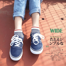 袜子女 日本条纹翻边潮人长袜复古纯棉中筒袜短袜子韩系运动棉袜
