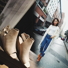 2016秋冬新款潮高跟磨砂皮真皮尖头低跟短靴细跟中跟裸靴及裸靴女