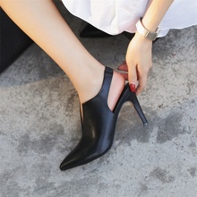木子2017春季新款欧美潮欧洲站细跟尖头后空性感高跟鞋高跟单鞋女