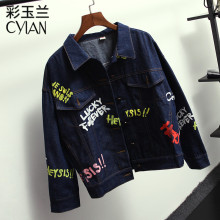 彩玉兰2017春秋新款长袖牛仔外套女短款宽松韩版潮喷漆字母印花